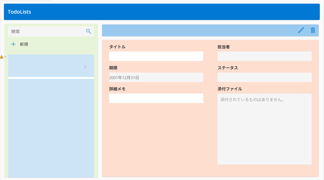 PowerAppsが自動的に一覧と詳細 兼 編集の3画面を生成します。